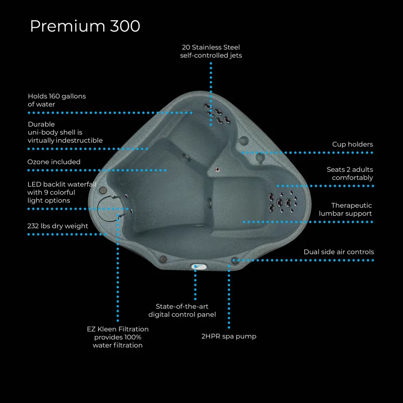 AquaRest Discover AR300 Premium 2-Person 20-Jet Oval Plug & Play Hot Tub with Ozonator, LED Waterfall and Stainless Steel Heater